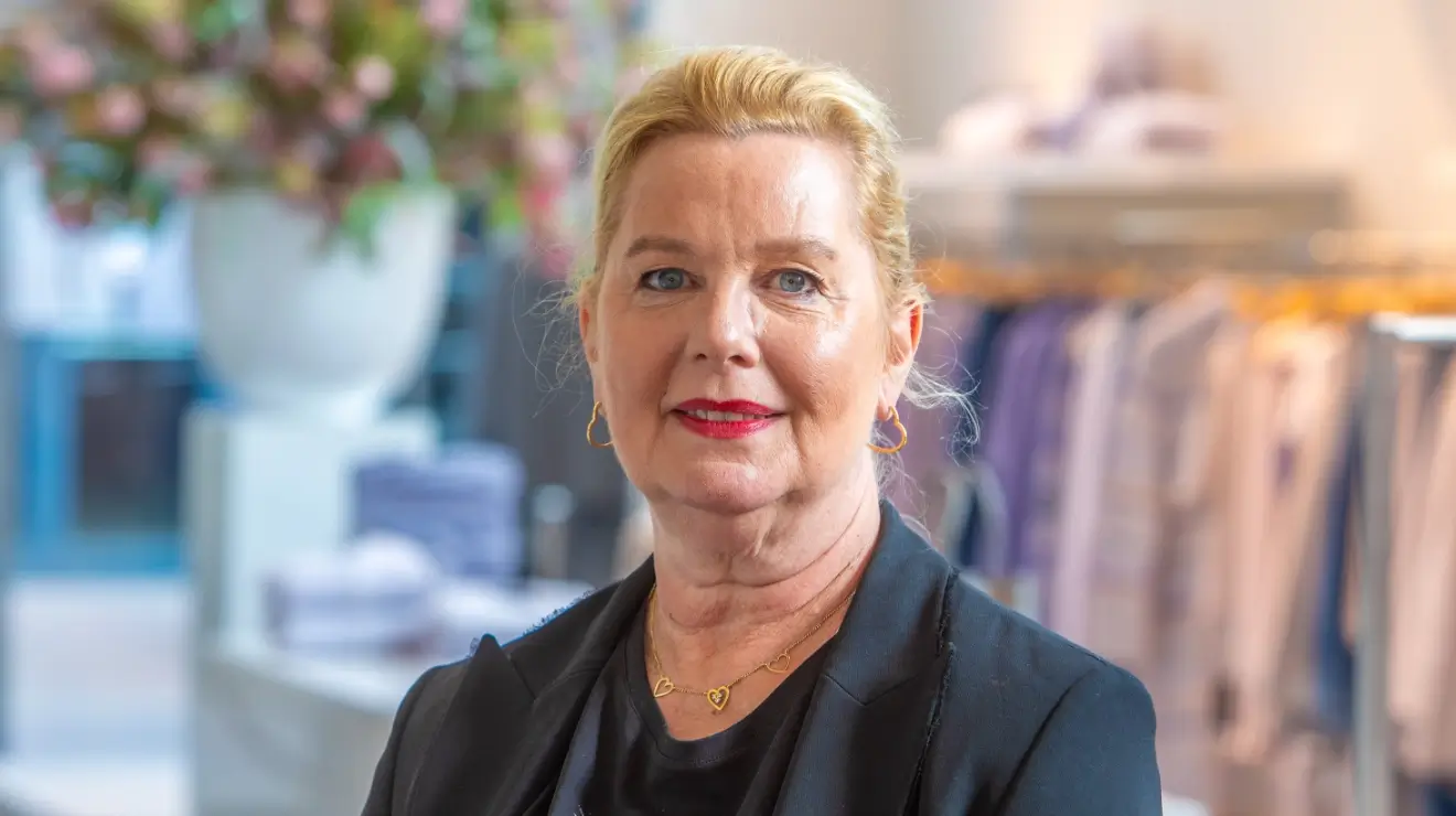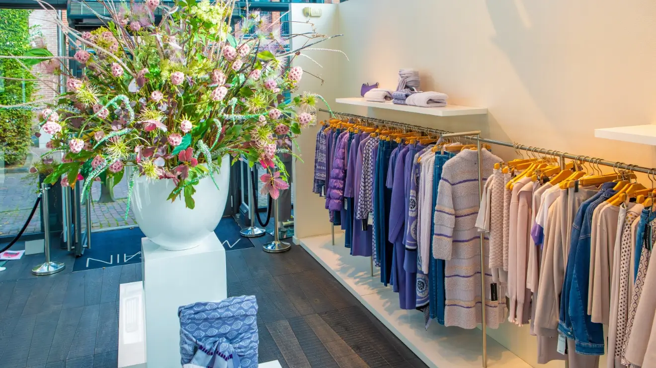 Wie bij Marc Cain in Laren binnenstapt, merkt meteen dat stijl en sfeer hier centraal staan. De winkel is verrassend ruim, licht en uitnodigend, met achterin een grote paskamerruimte en koffietafel waar klanten in alle rust lookbooks kunnen bekijken. Het is een plek waar modebeleving en comfort hand in hand gaan.